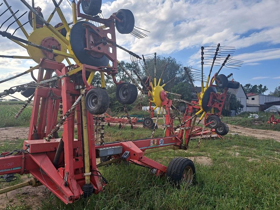 zgrabiarka 4 karuzelowa Pottinger grabi do środka od 8m do 12,5m do złożenia częsciowo już zlożona jak widać na pierwszym zdjenciu niska cena/lub zgrabiarka KUHN 7822 duża grabi 8m do boku lub na 2 wałki 2003r gwiazdy na 6 kołach kojujących orginal sprawna wałek w komplecie